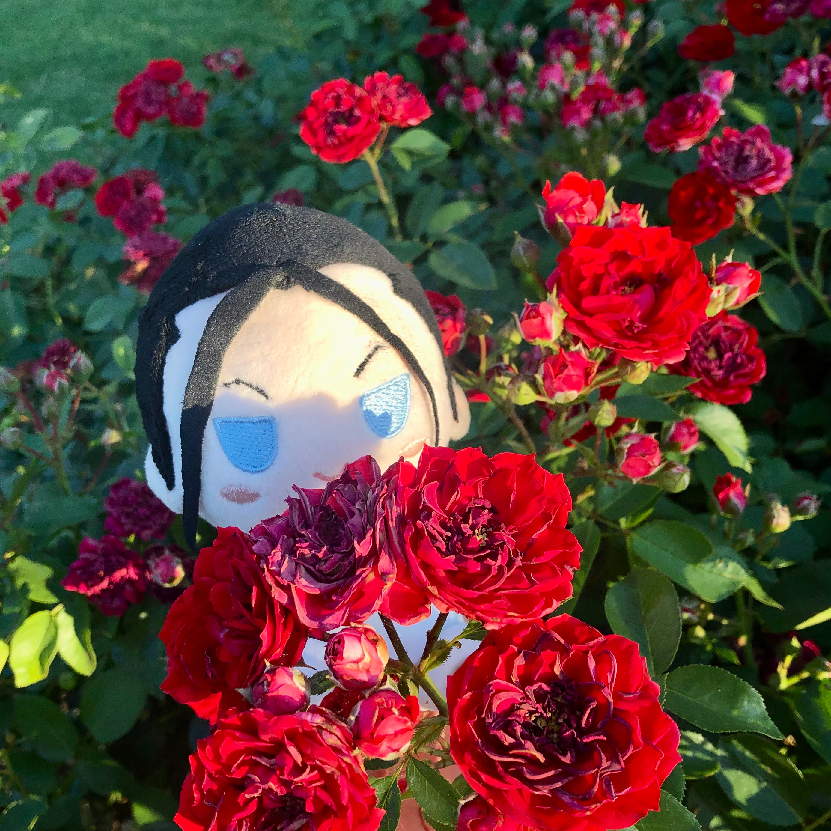 Today was a snowy day in Massachusetts. Last night, Kimblee got me a bouquet of rainbow roses. Or, rather, I was in the grocery store and took a peek at the flowers and heard his voice in the back of my head saying “Get some from me to you,” so I did. Looking at the roses on a snow day reminded me of the summer Kimblee and I went to the Dallas Rose Gardens.